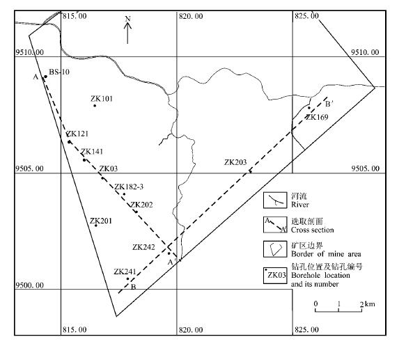 图 2布谷马西矿区钻孔位置分布图及剖面对比线(栾元滇等,2015) Fig. 2Location of drill holes and correlating lines of Cuckoo marcy mining ar ea (after Luan et al., 2015) |