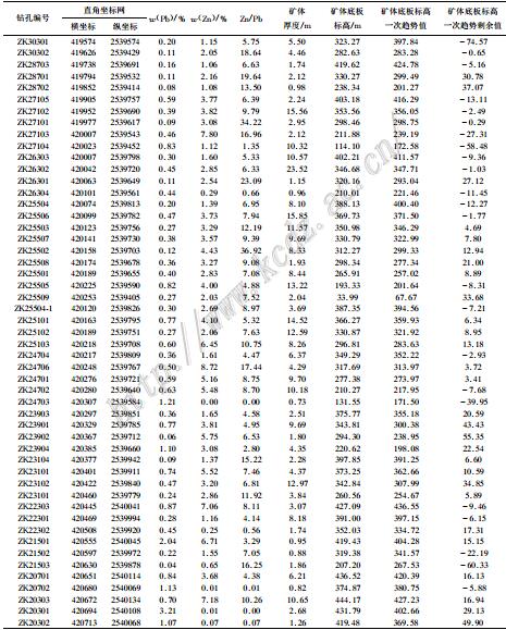 表 1各钻探工程中主矿体Ⅱ_1各项数据统计分析表 Table 1Statistical analyses of the No.Ⅱ_1 main orebody in each drilling proje ct |
