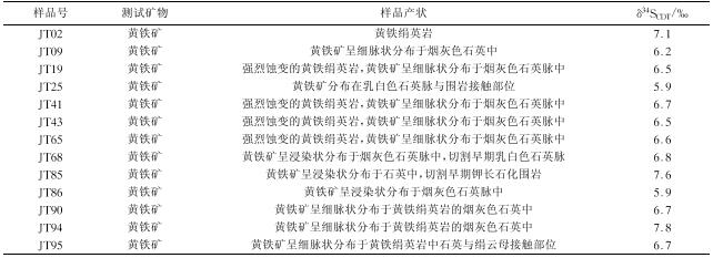 表 2谢家沟金矿床中主成矿期黄铁矿的硫同位素数据 Table 2Sulfur isotope data of pyrite of main metallogenic stage from the Xieji agou gold deposit |