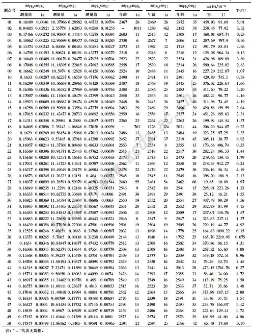 部重点实验室使用COMPExPro型193 nm ArF准分子激光器,束斑直径3 2 μm;每测定6个样品点测定一个锆石91500和一个NIST610,年龄计算以标准锆石91500为 外 标进行同位素比值分馏校正,元素浓度计算采用NIST610作外标,Si作内标,同位素比值及 年龄误差均为1σ。其具体试验测定过程可参见侯可军等(2009)和袁洪林(2012)。