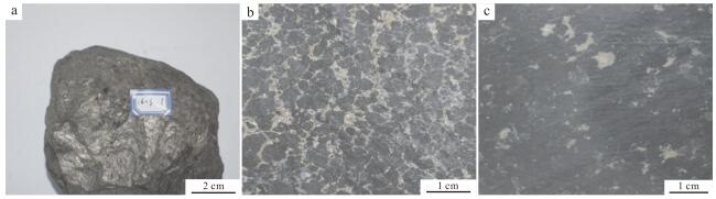 图 2金川矿床中块状矿石(a)、海绵陨铁状矿石(b)及浸染状矿石(c)手标本照片 Fig. 2Photos of massive (a), sideronitic (b) and disseminated (c) sulfide ores in the Jinchuan deposit |